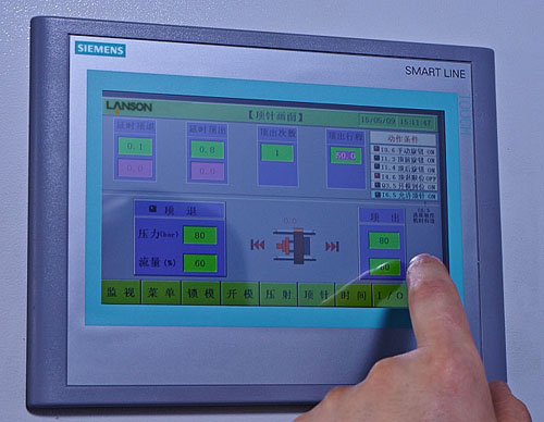 德國(guó)西門子控制系統(tǒng),具備生產(chǎn)管理,故障診斷及多組模具參數(shù)存貯等功能。